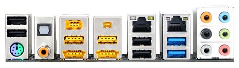 2 слота PCI Express x16 работают в режиме x8, 2 слота PCI Express x16 работают в режиме x4; 2 комбинированных порта eSATA/USB 2.0; 1 x PS/2 порт - комбинированный