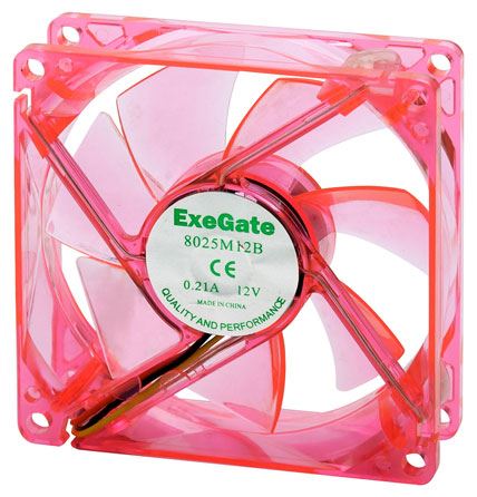 Вентилятор 080мм Exegate SMART 2200 об/мин 3pin, 1B1S ( 8025M12B/UV1 ) Red UV