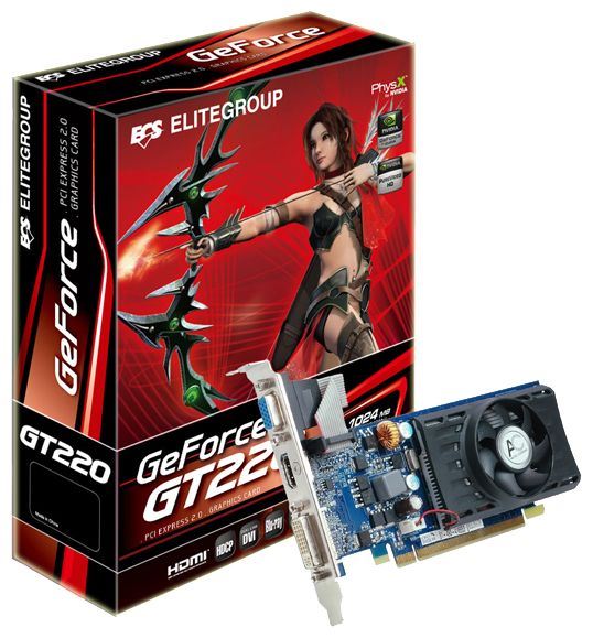 Видеокарта PCI-E nVidia GeForce GT 220 1024Mb ECS , DDR3 HDMI, DVI ( NGT220C-1GQR-F ) OEM