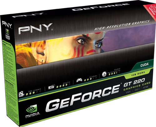 Видеокарта PCI-E nVidia GeForce GT 220 1024Mb PNY , DDR2 HDMI, DVI ( GMGT220N2E1FH-SB ) Retail