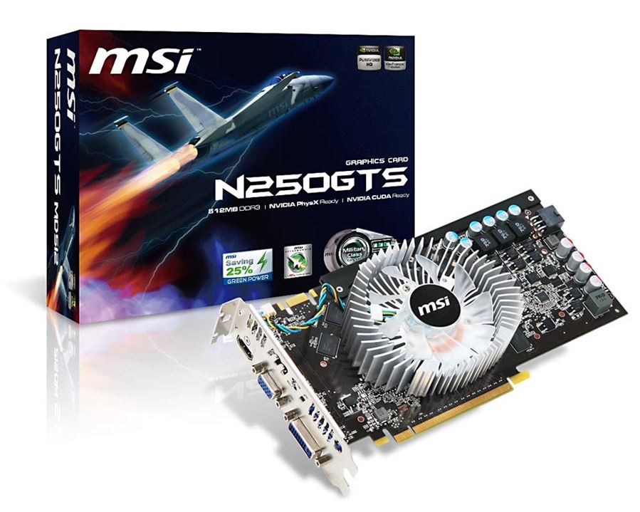 Видеокарта PCI-E nVidia GeForce GTS 250 0512Mb MSI , DDR3 ( N250GTS-MD512 ) Retail