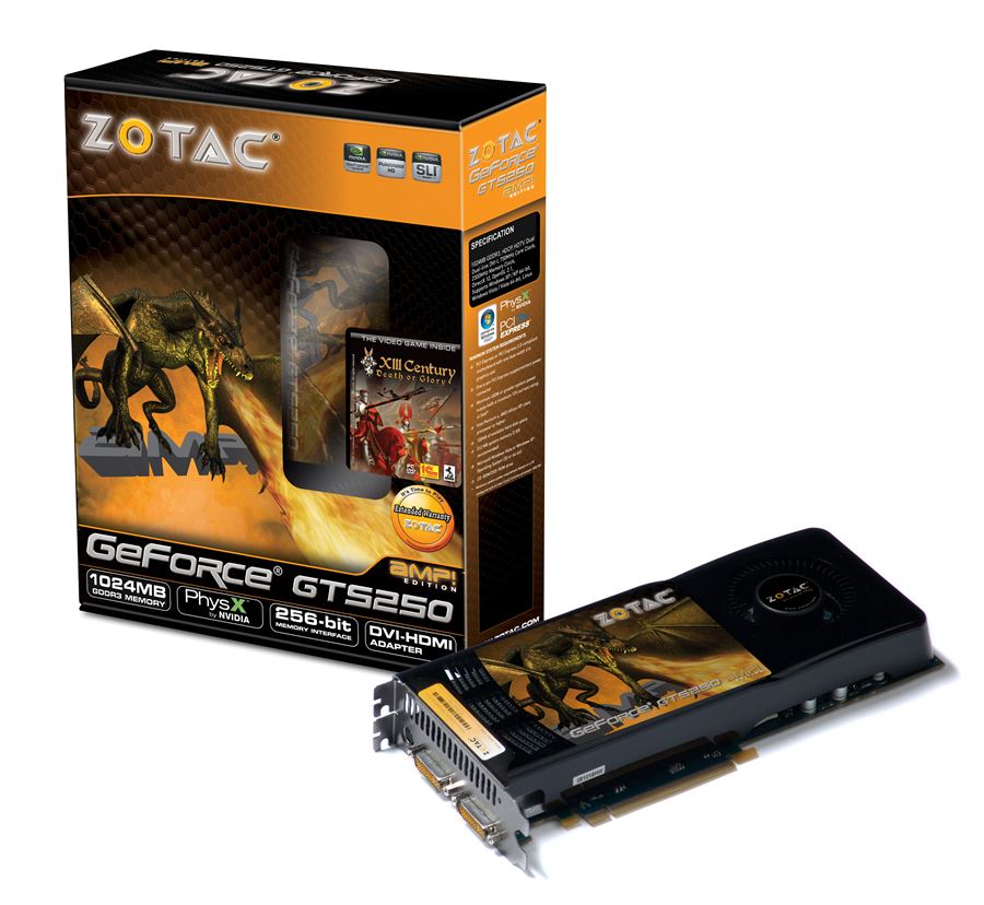 Видеокарта PCI-E nVidia GeForce GTS 250 1024Mb Zotac , DDR3 ( ZT-20102-10P ) Retail